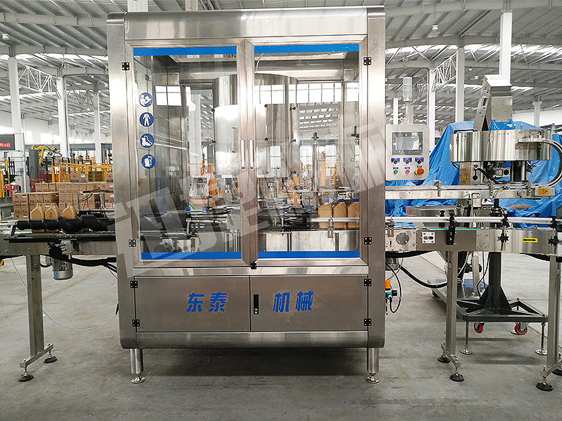 全自動回轉式旋蓋機旋蓋頭在連續運轉中將瓶蓋旋緊于瓶口。采用氣動方式控制夾緊旋蓋;本機結構合理,傳動平穩,性能穩定,維修方便,全自動回轉式旋蓋機是先進的旋蓋設備,主機動作由單一主電機經傳動系統完成,便于整機的額變頻調速控制。通過主機變頻調速和輸送帶變頻輸送以適應各規格生產能力的要求。該機采用光纖傳感器結構小巧,遇到故障能自動報警或停機,并在觸摸屏上顯示報警提示。保護了機器,包裝產品質量。